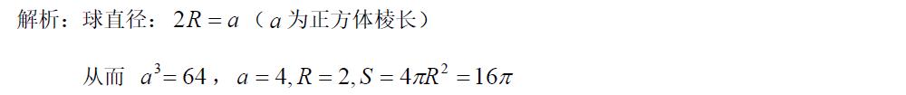 已知球的外切正方體的體積$64\, \mathrm{cm}^3$為,則這個球的表面積為( )$\mathrm{cm}^2$.