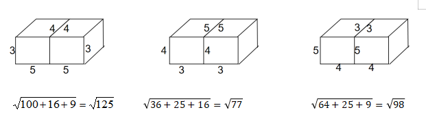 兩個長方體的長、寬、高分別為5厘米,4厘米,3厘米,把它們拼成一個大長方體,則這個大長方體的體對角線的最大值為( )。
