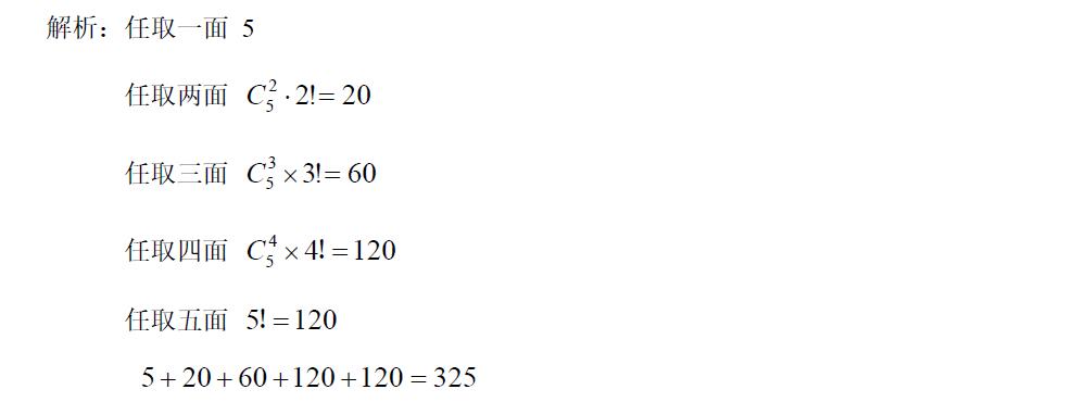 從不同顏色的5面的小旗中,任取若干面按不同的順序升上旗桿,表示不同的信號,那么能表示不同信號的總數為( ).