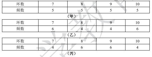 甲、乙、丙三名射箭運動員在某次測試中各射擊20次,三人的測試成績如下表: