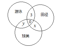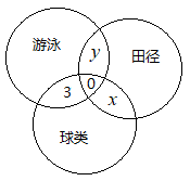 解析:由條件(1),設參加球類和田徑比賽的有$x$人,參加游泳和球類比賽的有$y$人,如圖所示: