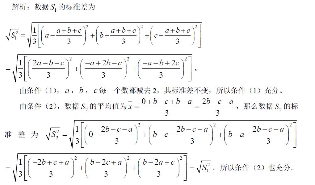 數據$S_1: a, b, c$與數據$S_2$的標準差相等.