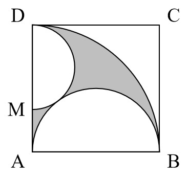 如圖所示,正方形ABCD的面積為$1$,以A為圓心作$\frac{1}{4}$的扇形弧BD,以AB為直徑作半圓弧AB,M是AD上一點,以DM為直徑作半圓弧DM與半圓弧AB外相切,則圖中陰影部分的面積為( )