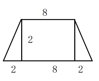 一個等腰梯形,上底是8,下底是12,底角45°,則此梯形面積( )