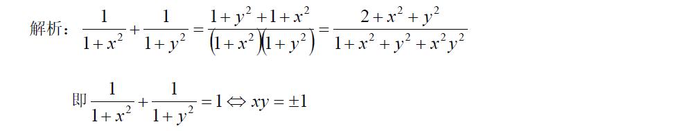 $\frac{1}{1+x^2}+\frac{1}{1+y^2}=1$