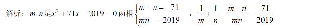 若$m, n$為實數(shù),$m\neq n$,$m^2+71m-2019=0$,$n^2+71n-2019=0$,則$\frac{1}{m}+\frac{1}{n}=$( ).