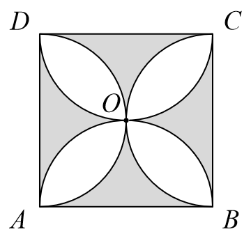 【解析】連結正方形的兩條對角線,從而這兩條對角線把空白部分分成$8$個相等的部分,且每個空白部分的面積為:$\dfrac{\pi}{4}\cdot (\dfrac{1}{2})^{2}-\dfrac{1}{2}\times\dfrac{1}{2}\times\dfrac{1}{2}=\dfrac{\pi}{16}-\dfrac{1}{8}$.